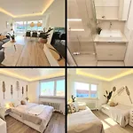 その部屋から都市の風景が見えます. 3 Zi, Balkon, Ruhig, 73M^2: Ein Hauch Von Luxusアパ-トメントアパ-トはベッドル-ム2室があります. 3 Zi, Balkon, Ruhig, 73M^2: Ein Hauch Von Luxusアパ-トメントアパ-トは個別のトイレ とシャワ-のある2室のバスル-ムを提供しています.
